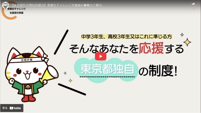 将来の自立に向けて意欲的に取り組む子供たちが高校や大学への進学を目指し、受験に挑戦することを支援する事業です。東京都の補助を受けて、東京都社会福祉協議会が実施しています。